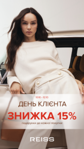 День Клієнта у REISS! 10, 11 і 12 жовтня запрошуємо вас на особливі дні у магазині REISS, детальніше...