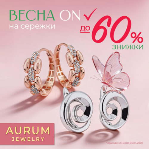 В ювелірній мережі AURUM на вас чекає особлива пропозиція — знижки до -60% на сережки із золота та срібла.