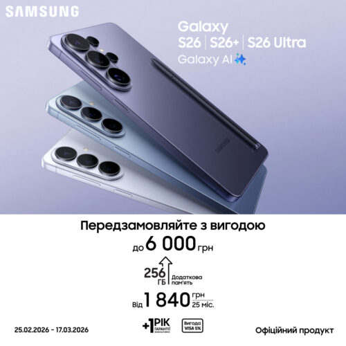 Передзамовляйте Galaxy S26|S26+|S26 Ultra та отримуйте додаткову вигоду та +1 рік гарантії в подарунок!